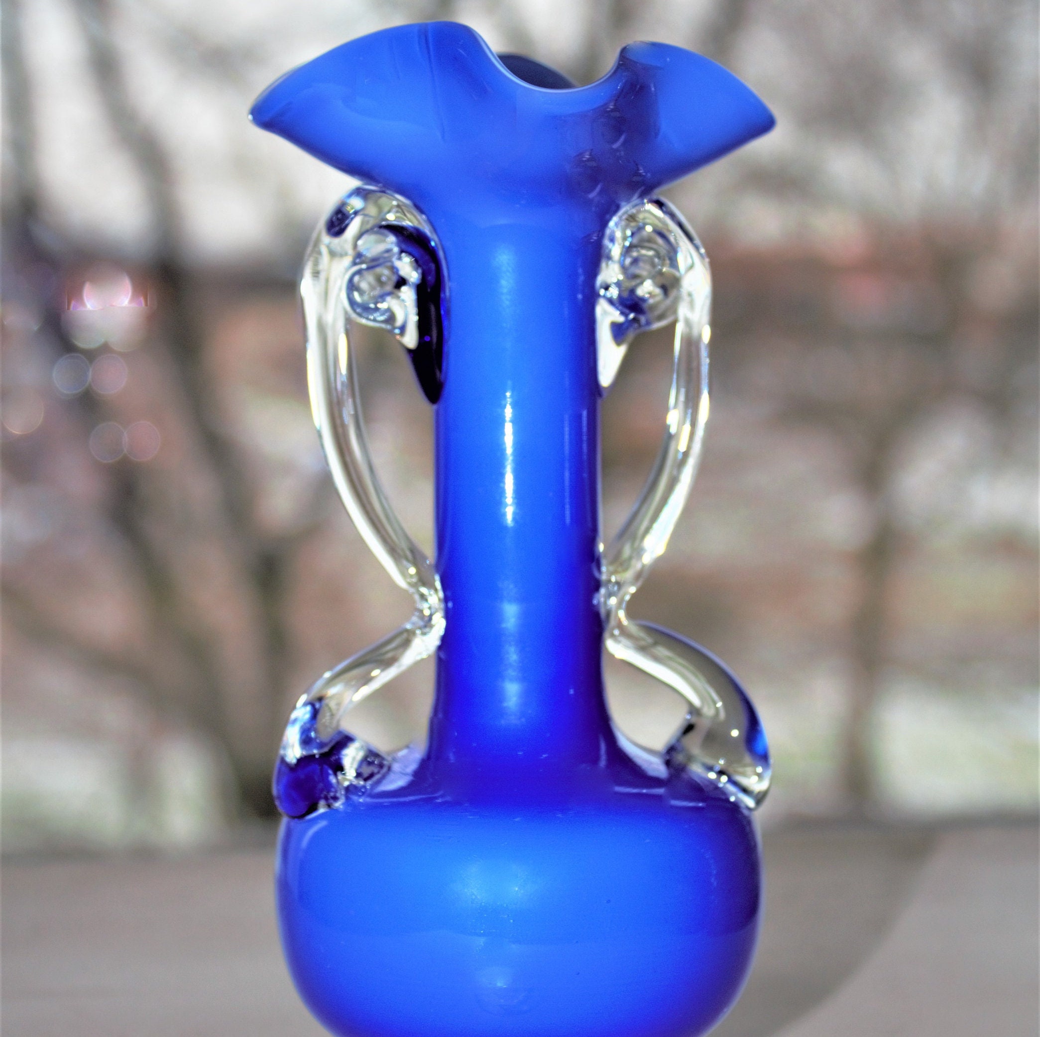 Blue Murano Vase Italian Murano Blue Cased Glass Vase Blue Etsy Uk